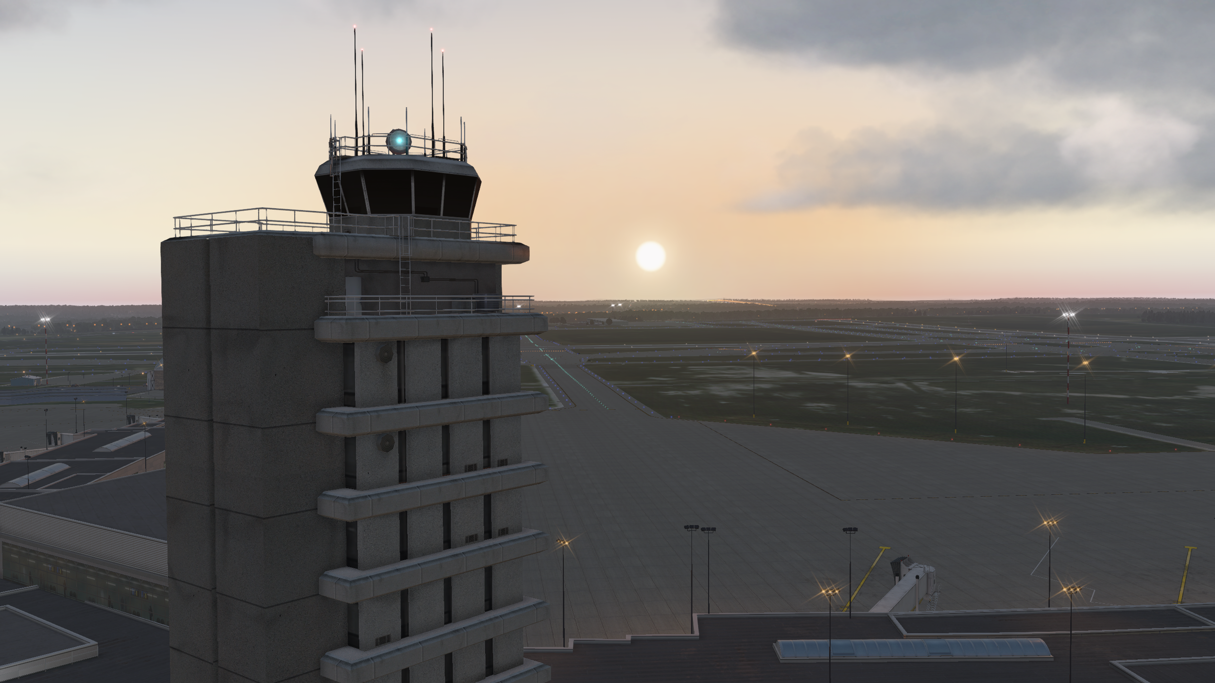 Designed and implemented detailed airport scenery using real-world reference data, including precise runways, taxiways, navigation aids, buildings, and surrounding terrain.